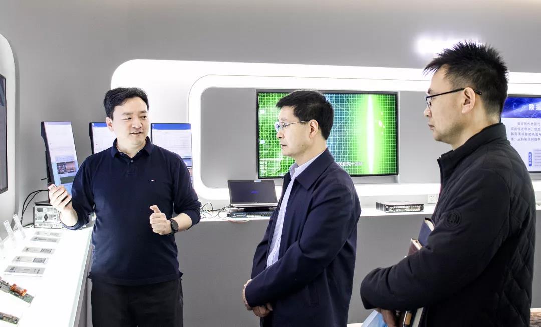 张继红副书记一行参观了国科天迅总部办公环境,其中重点参观了国科天迅企业展厅,详细地了解了国科天迅的企业文化、核心业务、详细产品以及芯片设计领域的专利成果和技术优势等。双方就产品的实际应用、行业的未来发展前景等进行了交流和探讨。